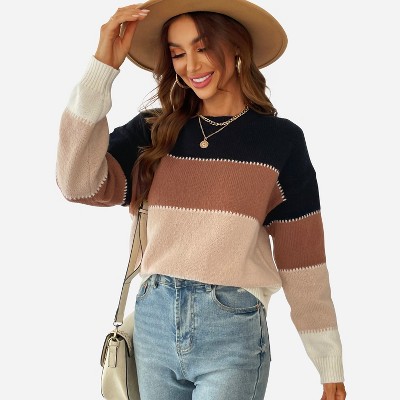 Women Casual Knitted Color Block Sweater Ladies Jumper Autumn Loose Colorful Striped Sweaters Pullovers Winter Fluffy Sweater Walmart Com